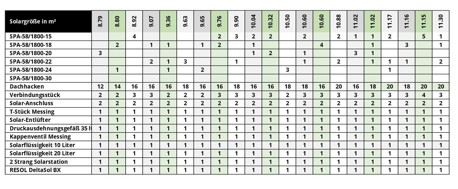 - (siehe Tabelle) Messingverschraubungen (zum Verbinden der Sammler)